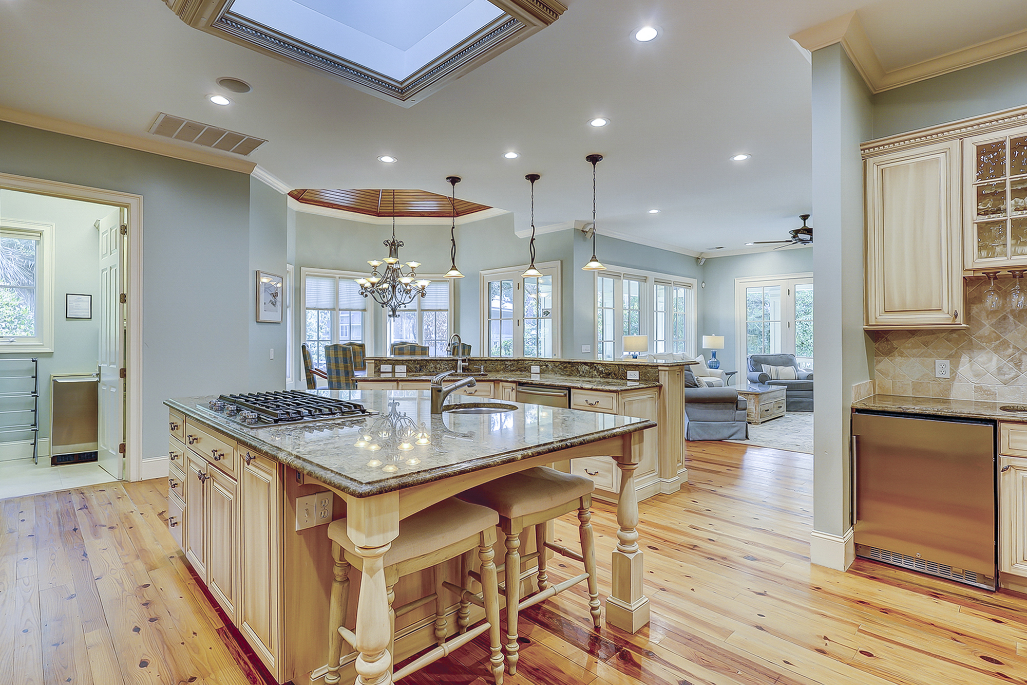 This spacious home completed 2021 off-season renovations and redecorating. Updates include the addition of a 5th bedroom with a set of built-in twin-xl bunks and a comfortable built-in queen-size dormer bed complete with a private en-suite bathroom; an expanded pool deck to accommodate outdoor dining and adding space for additional chaise loungers plus an outdoor television on the covered porch that can be viewed from the saltwater pool and spa; new living room, family room, and dining room furniture; the addition of two new beverage fridges to the wet bar and a built-in ice maker just off the kitchen.