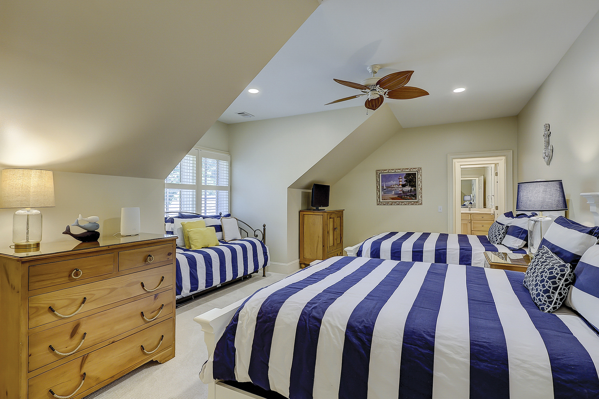 - Bedroom 4: Two Queens + Twin Daybed w/ Trundle (2nd Floor, Flat Screen TV, Private Bath)