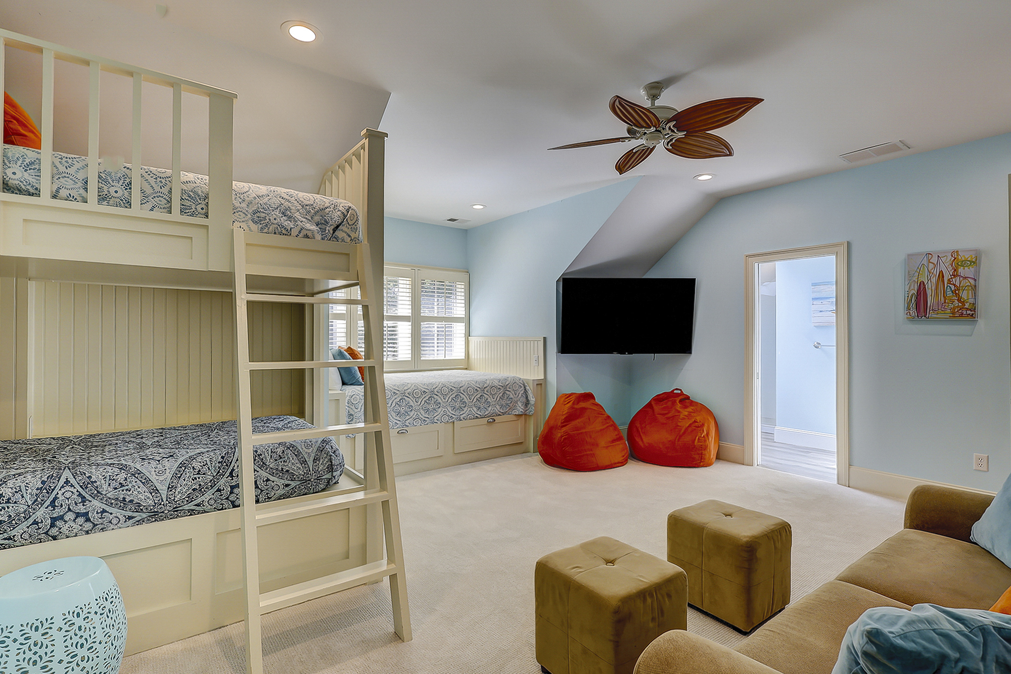- Bedroom 5: Built-In Queen & Twin Bunk + Queen Sleeper Sofa (2nd Floor, Flat Screen TV, Private Bath)
