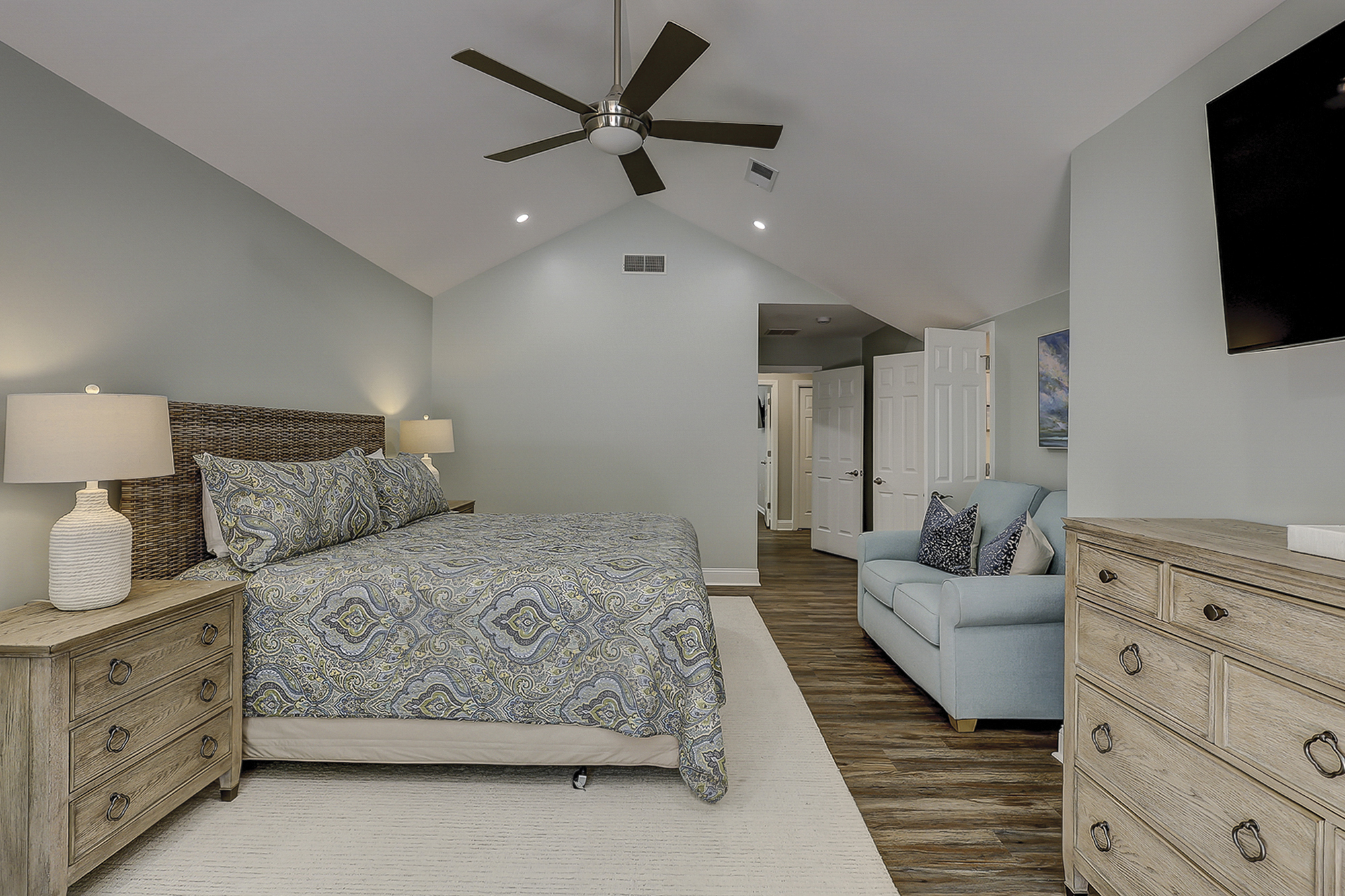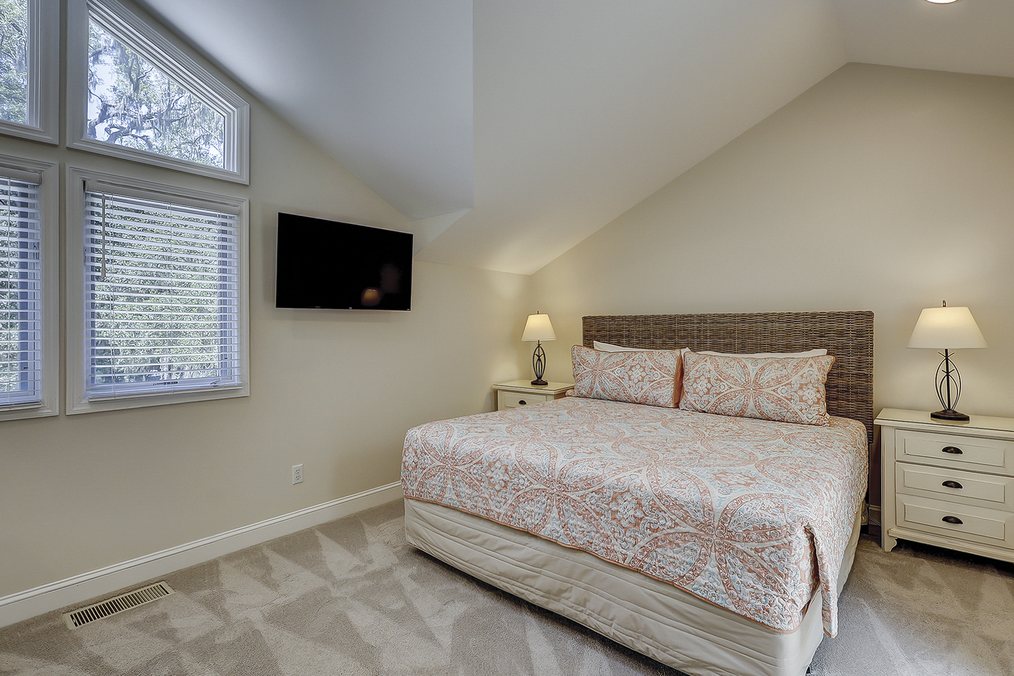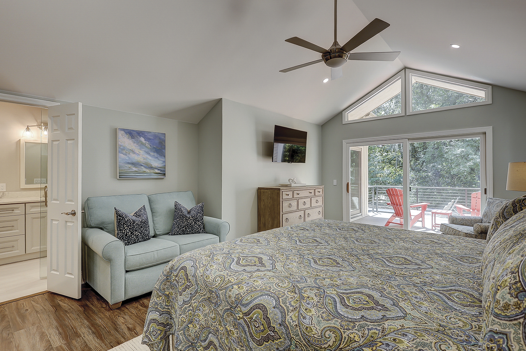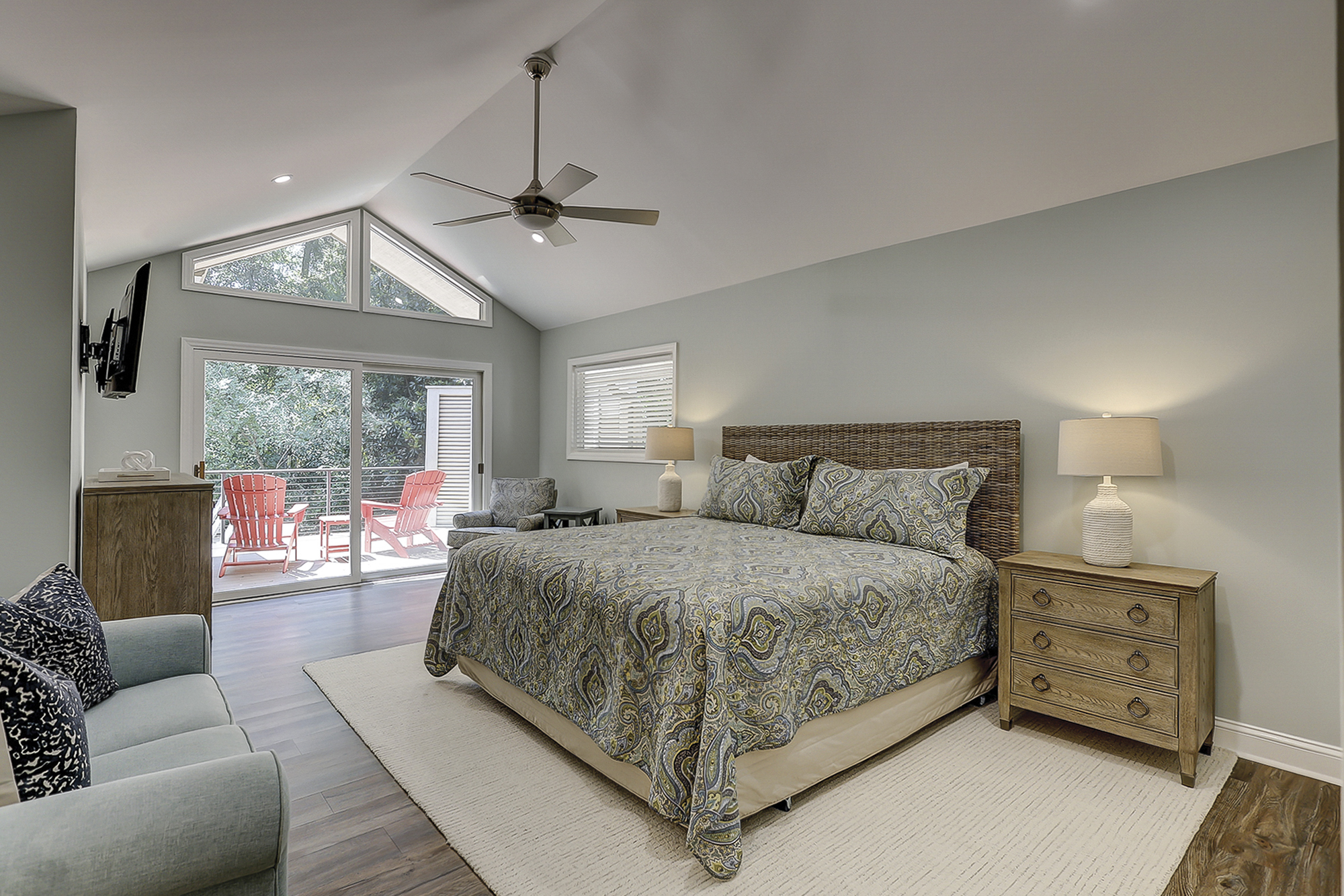 - Bedroom 1: King (Master, 1st Floor, 50" Flat Screen TV, Private Bath, Deck Access)