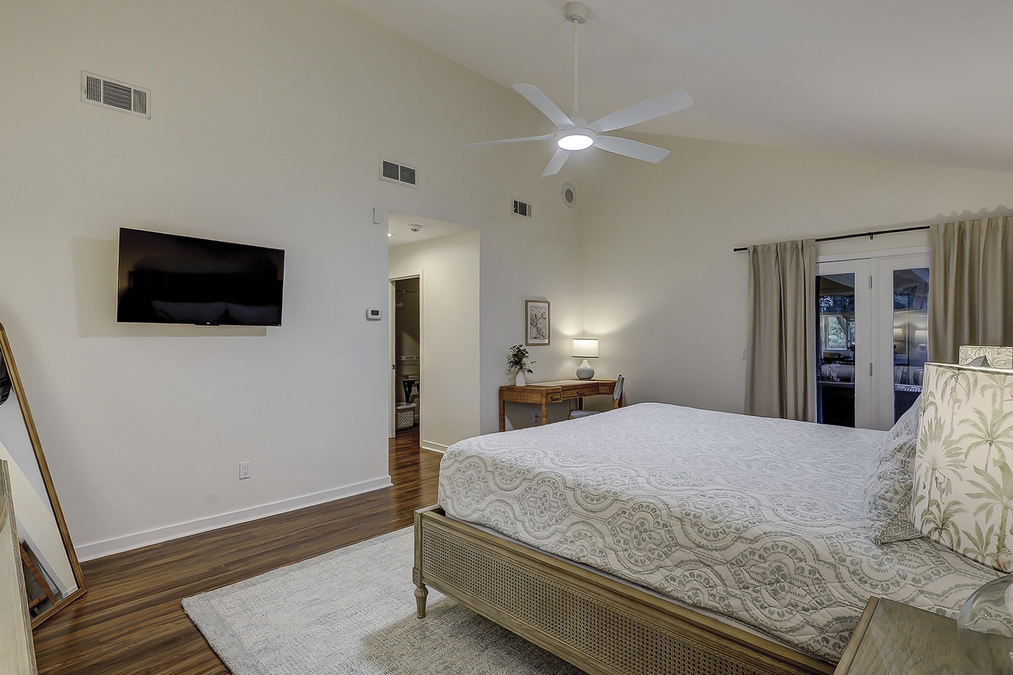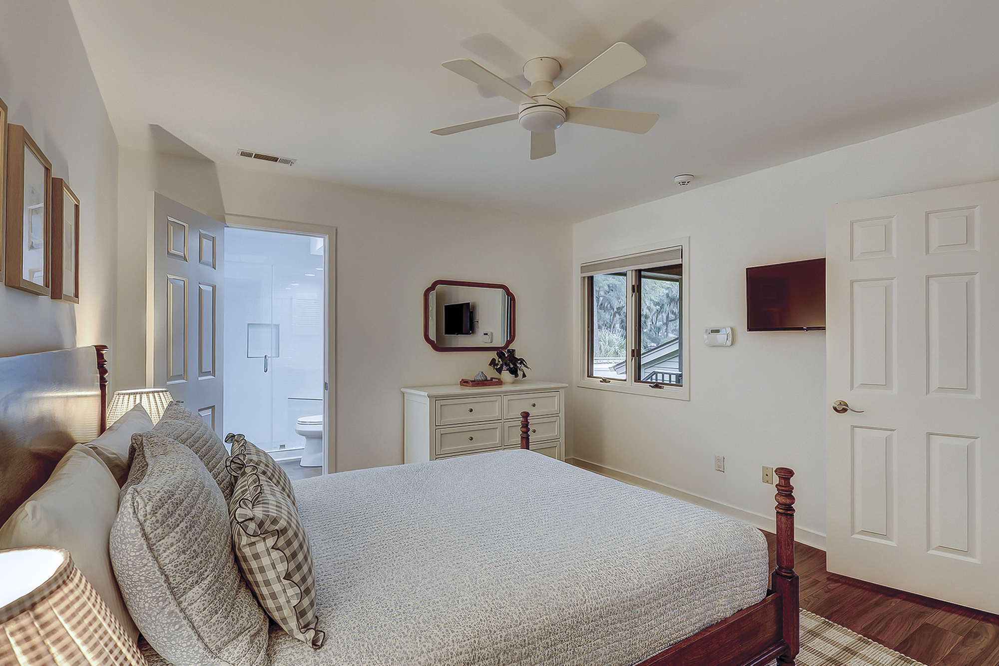 - Bedroom 1: King (Primary Bedroom, 43” Flat Screen TV, Private Bathroom with a Walk-In Shower)