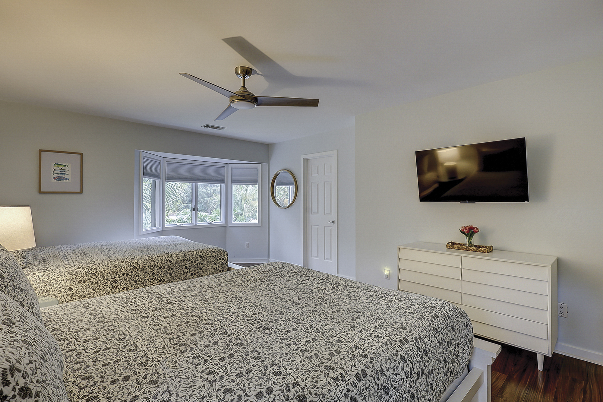 - Bedroom 5: Two Queen Beds (43” Flat Screen TV, Shared Jack/Jill Bathroom Bedroom with a Walk-in Shower)