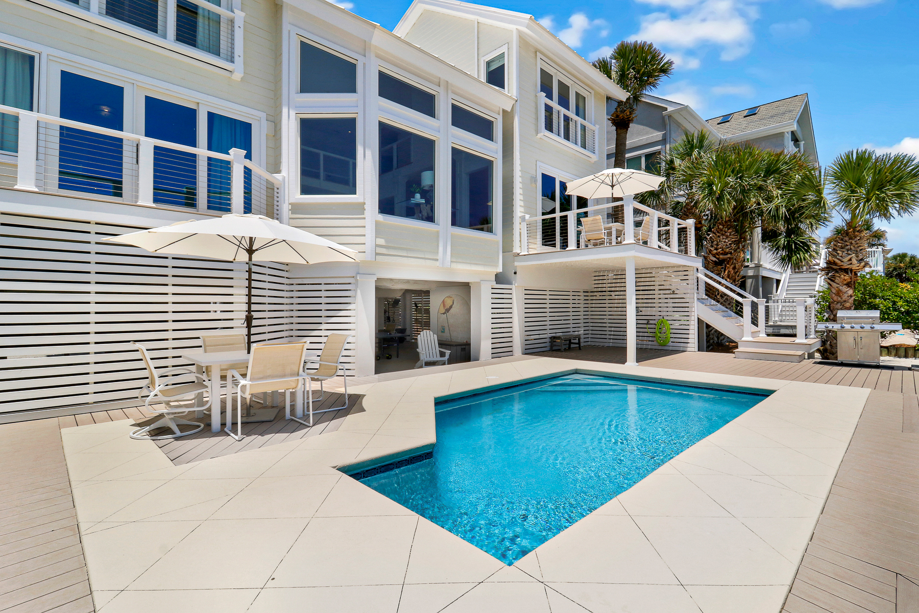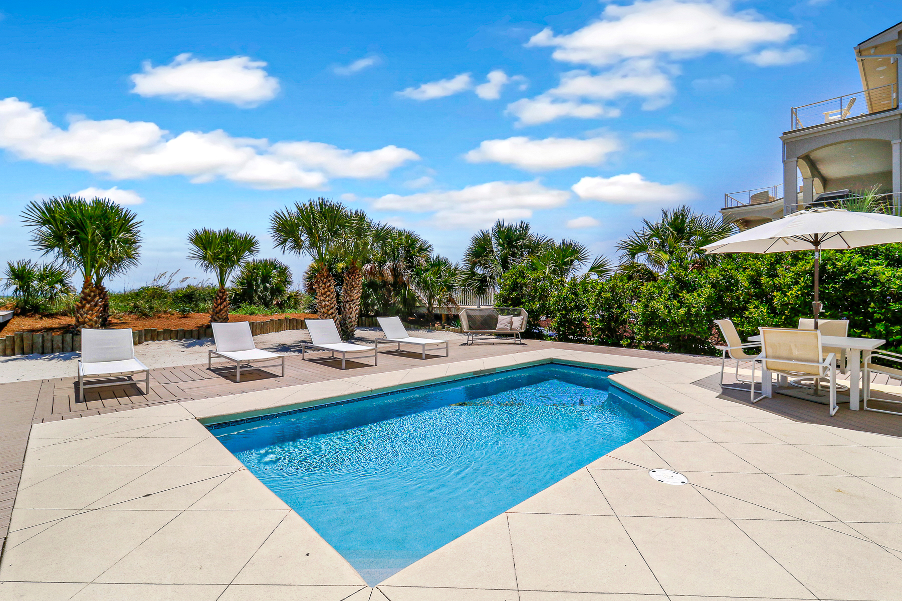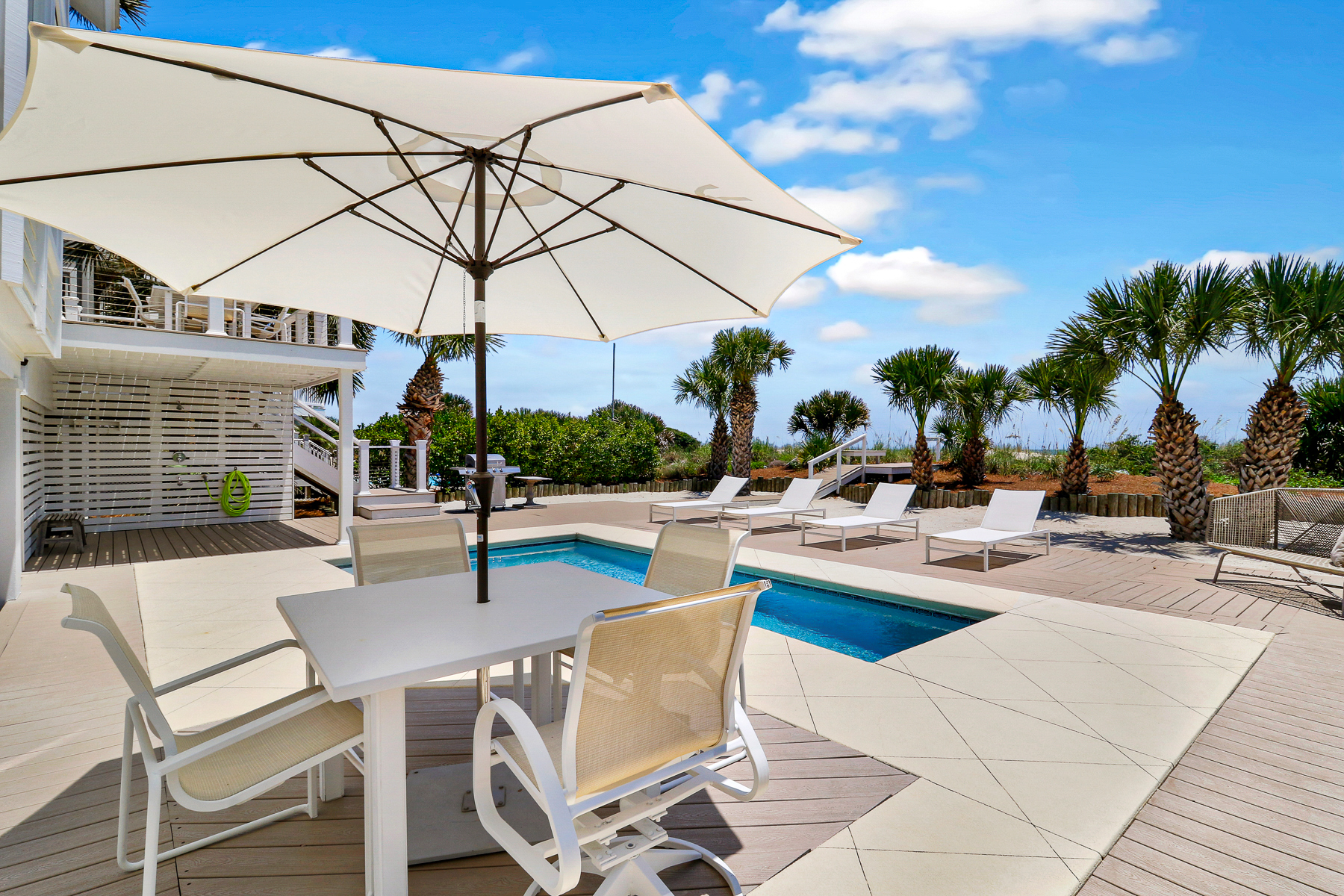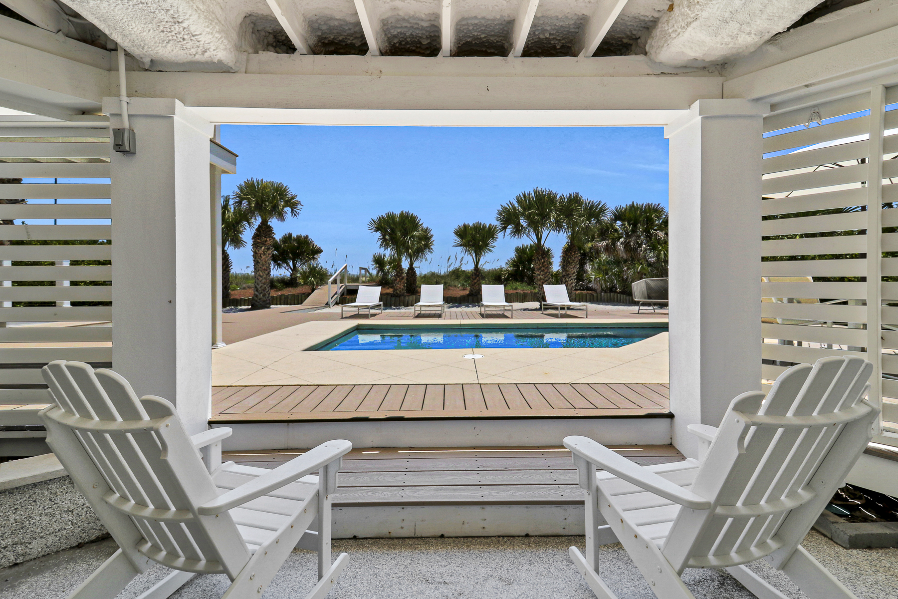 The private pool deck area overlooks the pristine beach and ocean. A nice perk is the home offers complementary pool heat seasonally. As long as the outdoor temperature doesn't fall below 55 degrees, you are all set to enjoy FREE pool heat typically March through May & September through October.