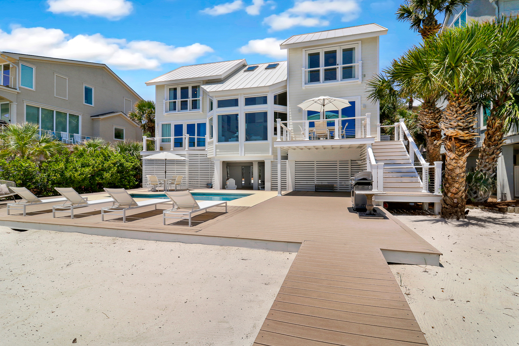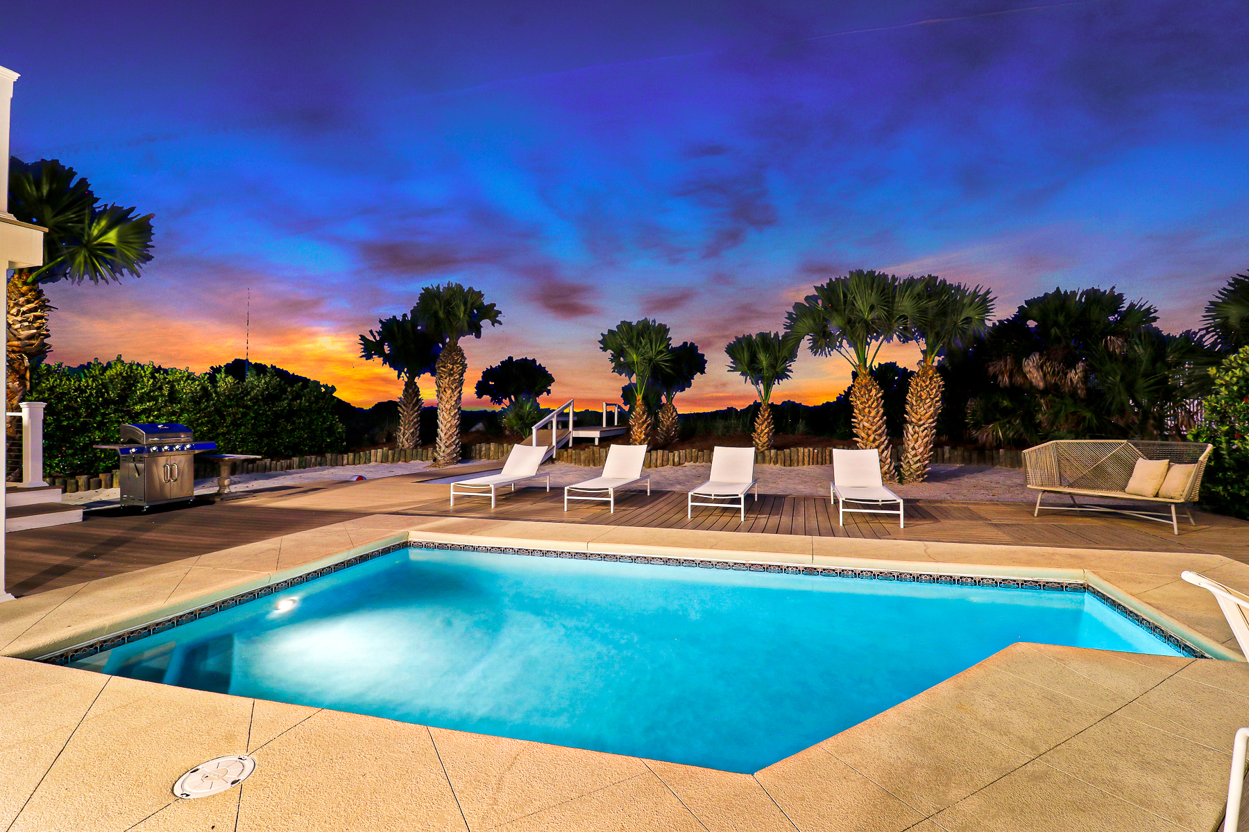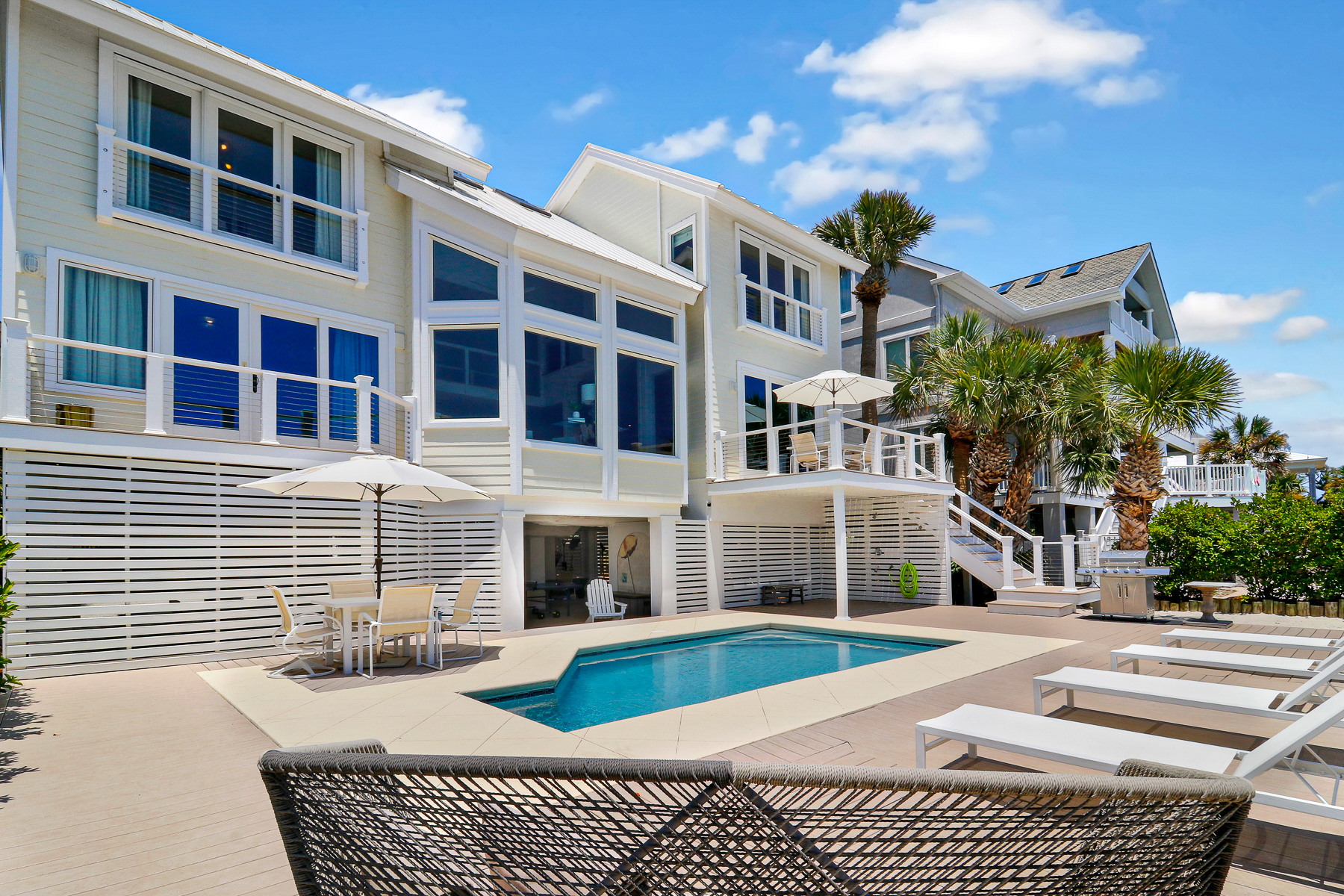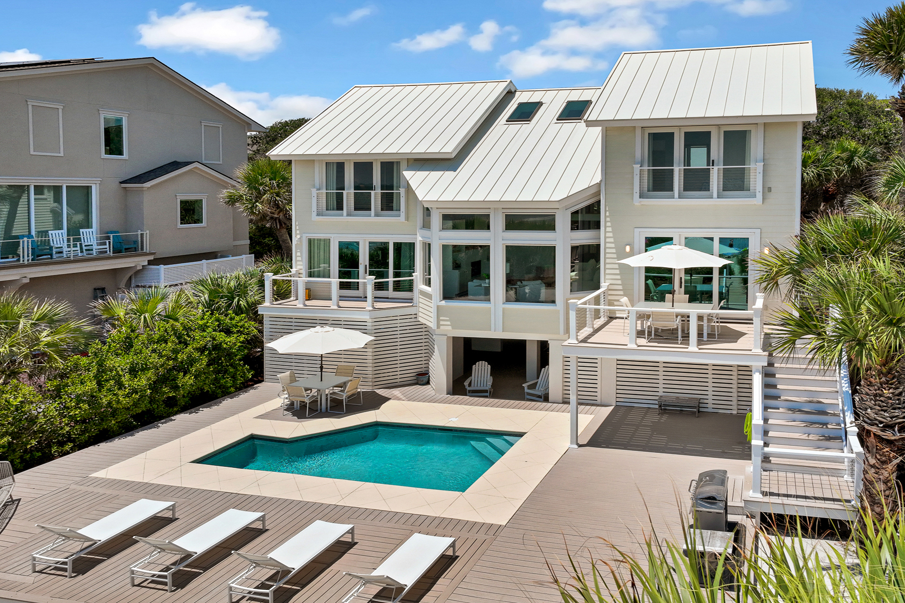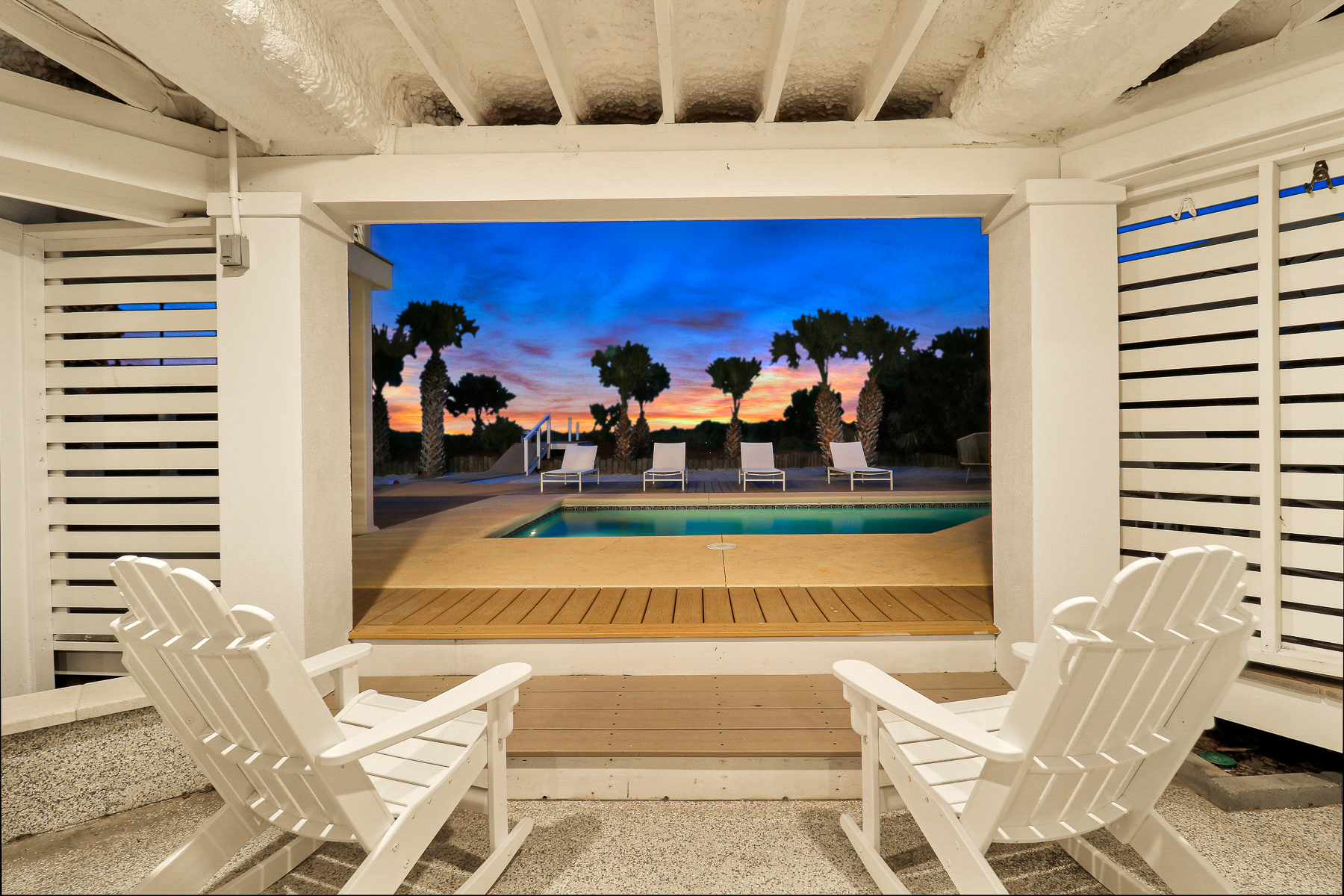 The private pool deck area overlooks the pristine beach and ocean. A nice perk is the home offers complementary pool heat seasonally. As long as the outdoor temperature doesn't fall below 55 degrees, you are all set to enjoy FREE pool heat typically March through May & September through October.
